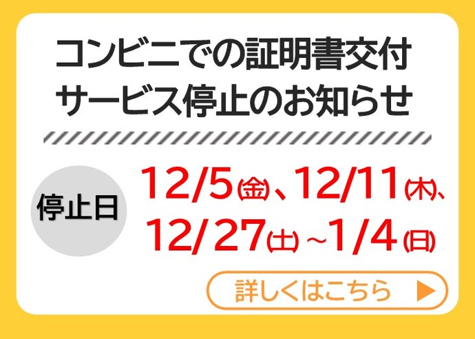 コンビニでの証明書交付サービス停止のお知らせ