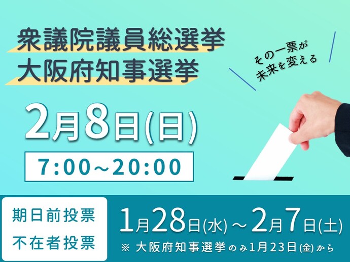 令和8年2月8日執行 衆議院議員総選挙・大阪府知事選挙のお知らせ
