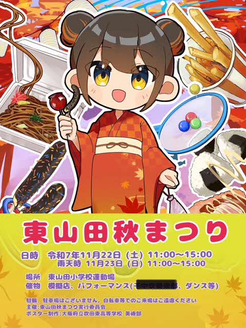 | 東山田秋まつり | 東山田小学校 | 11月22日(土曜)11時~15時 雨天延期:11月23日(日曜・祝日) |