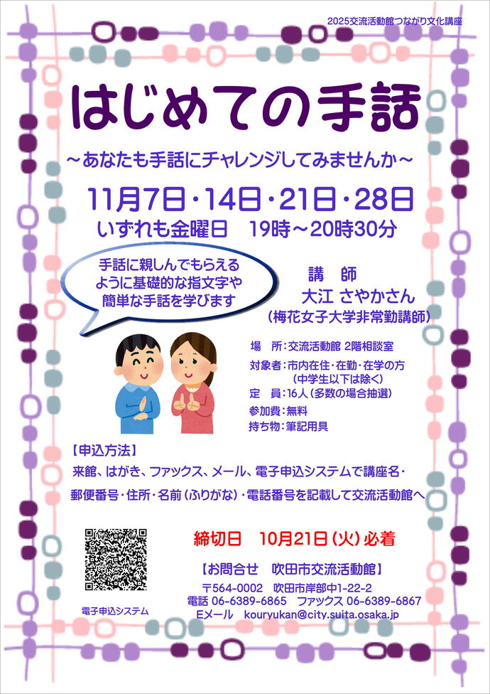 令和7年度(2025年度)交流活動館つながり文化講座 短期講座